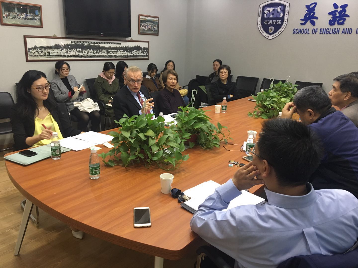 然后,Carr院长夫妇与澳大利亚研究中心广大师生见面,就中澳关系的现状与走势进行了坦诚、热烈的讨论。pg娱乐电子游戏官网入口副院长谢韬教授、北外“长青学者”韩锋教授、戴宁副教授、澳研中心副主任胡丹及全体澳大利亚研究专业硕士参加了此次会谈,北京大学国际关系学院查道炯教授、社科院研究员秦升也受邀出席。