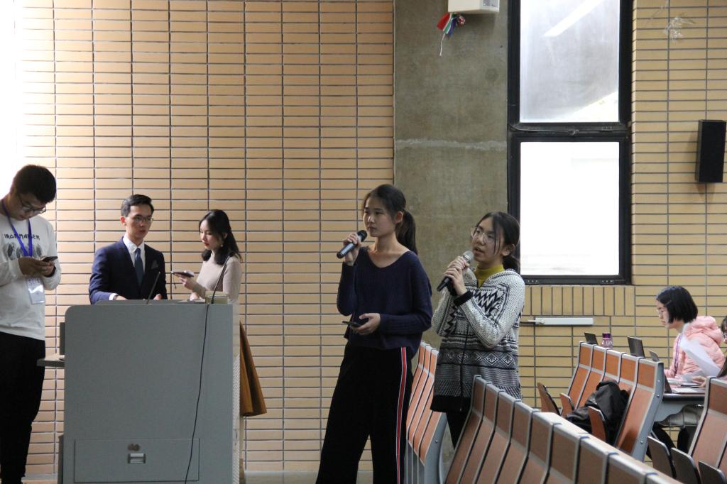 比赛于14时正式开始。参与复赛的一共有20个小组,每7组为一场展示电影配音,场间休息时有观众互动的游戏环节。参赛选手们带来了《冰雪奇缘》《疯狂动物城》《寻梦环游记》《成长教育》等五花八门的节选配音。各小组成员之间的配合非常默契,台词衔接流利。他们以饱满的热情、高超的技巧和或高昂或低沉的音调将电影人物演绎得惟妙惟肖。更有甚者,一人分饰多角,让在场的观众大饱耳福,赞不绝口。在场的评委老师们对选手们的表现力、同步性和语音做出了点评,肯定了选手在配音上下的苦工,同时也给出恳切的建议。