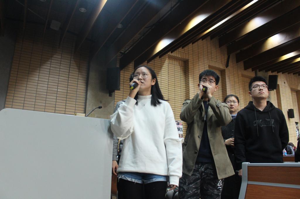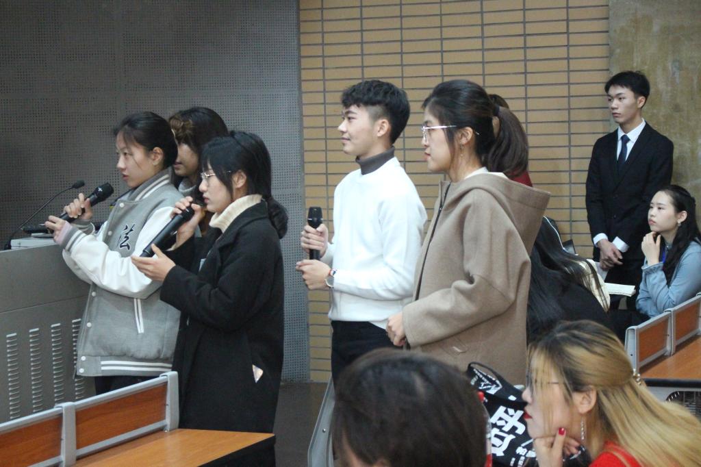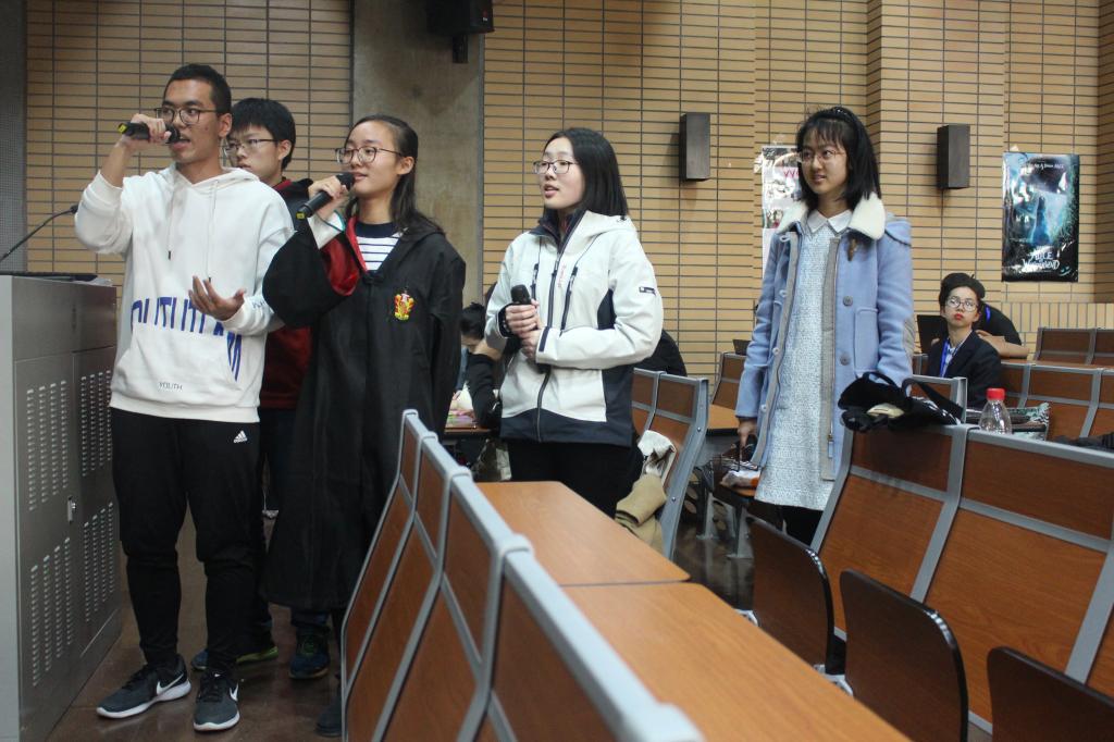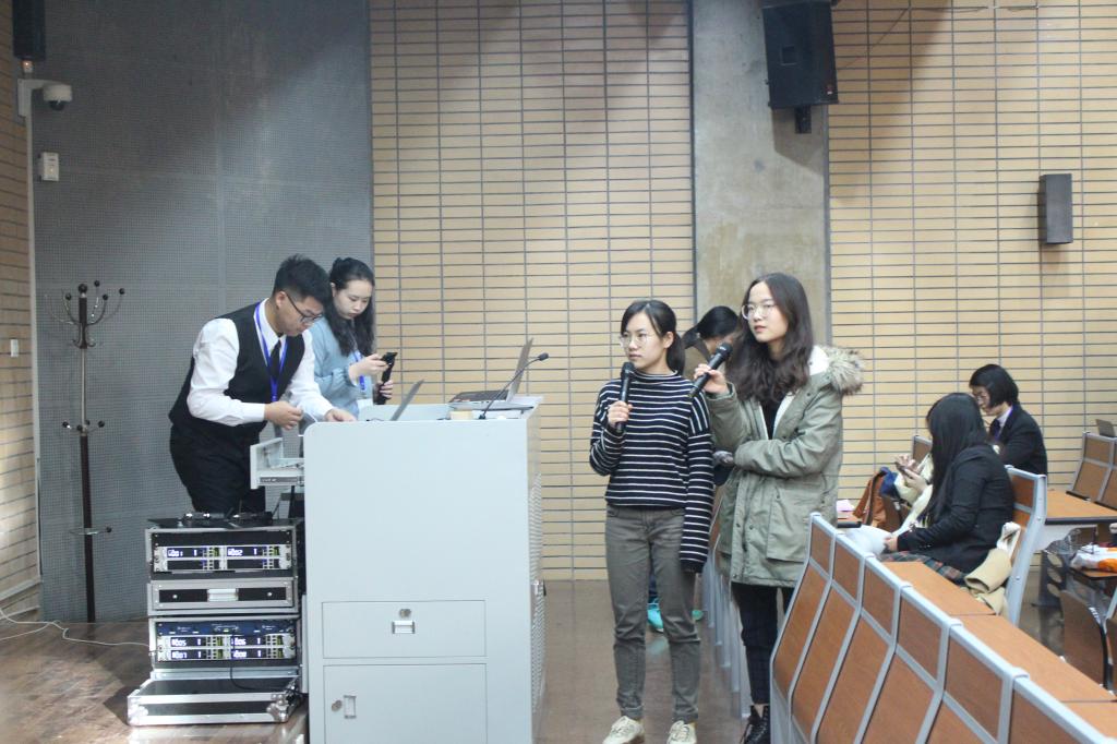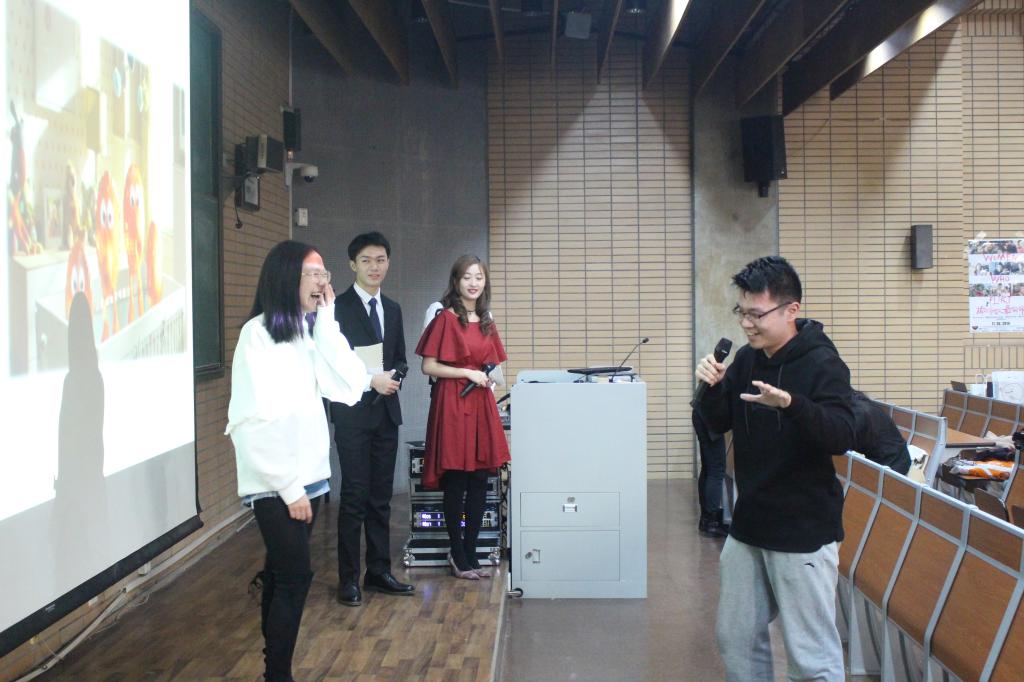 本届配音大赛总决赛由pg娱乐电子游戏官网入口团学联学术部主办,并邀请到了著名配音演员付博文老师与毛毛头老师、英语专业讲师夏燕老师与孙维老师,以及上届配音大赛冠军於文漪同学至现场担任评委。本场比赛共分为自选片段配音与创意英文配音两轮比拼,评委老师们在每一轮比赛的最后都肯定了参赛者们的创意与表现,并为他们提出了中肯而具建设性的建议。现场参与同学在大饱耳福的同时,也收获了许多有关配音与英语口语的技巧与知识。