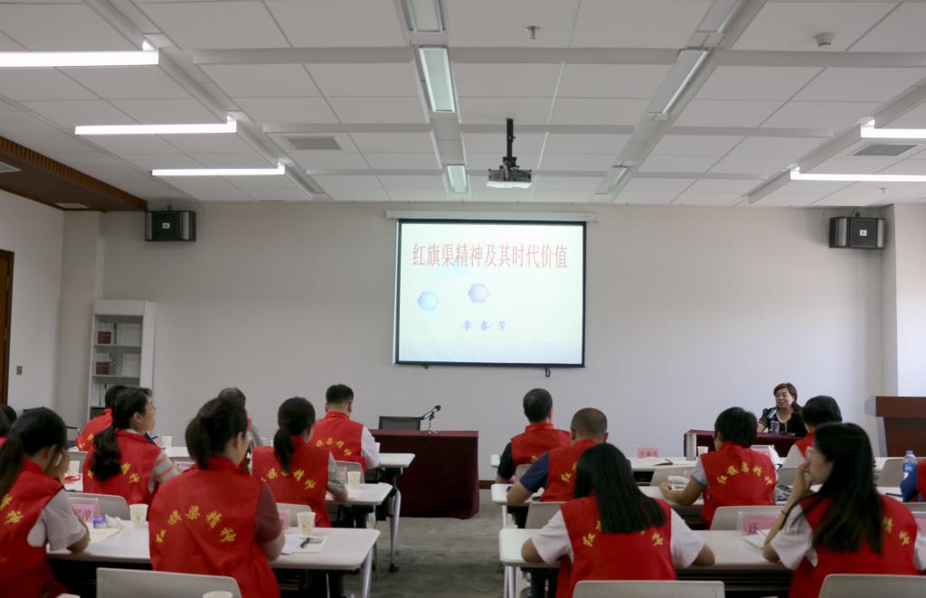 在为期4天的学习活动中,参加学习的师生先后通过聆听讲座、观看音像、现场教学、情景教学和实践教学等方式,深层次、近距离学习领悟红旗渠精神。开班仪式伊始,大家首先聆听了林州市委党校高级讲师李春芳从山水林州,画里家乡艰难困苦,玉汝于成人工天河,情动天下传承精神,再续辉煌四个方面向大家介绍的红旗渠修建背景、修建过程以及红旗渠精神的当代价值。随后家一起观看了纪录片《红旗渠》,真实的黑白画面让大家对当时的红旗渠修建有了更直观的了解。