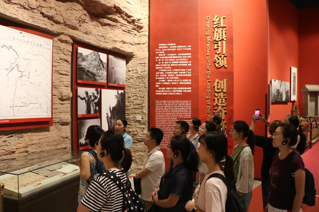 现场教学由带班老师带领大家前往纪念馆进行学习,大家先后参观了红旗渠纪念馆、扁担精神纪念馆和谷文昌纪念馆。通过详细了解一张张图片、一件件文物的立式背景和说明,大家真切感受共产党领导下的林县(现林州市)人民修建红旗渠的伟大历程,深刻领会了我们党从群众中来、到群众中去的群众路线。此外,大家一同走红飘带、走水长城、观摩咽喉工程青年洞以及观看实景舞台剧《红旗渠》,身临其境感受当年那段修渠岁月,对自力更生、艰苦创业、团结协作、无私奉献的红旗渠精神有了更加直观的感受和理解。在实践教学环节,参加学习的师生轮流挑着扁担走山路,重走为民路,感受当时全国供销社先进旗帜——石板岩供销社艰苦创业、勤俭办社、一心为民、开拓创新的扁担精神。