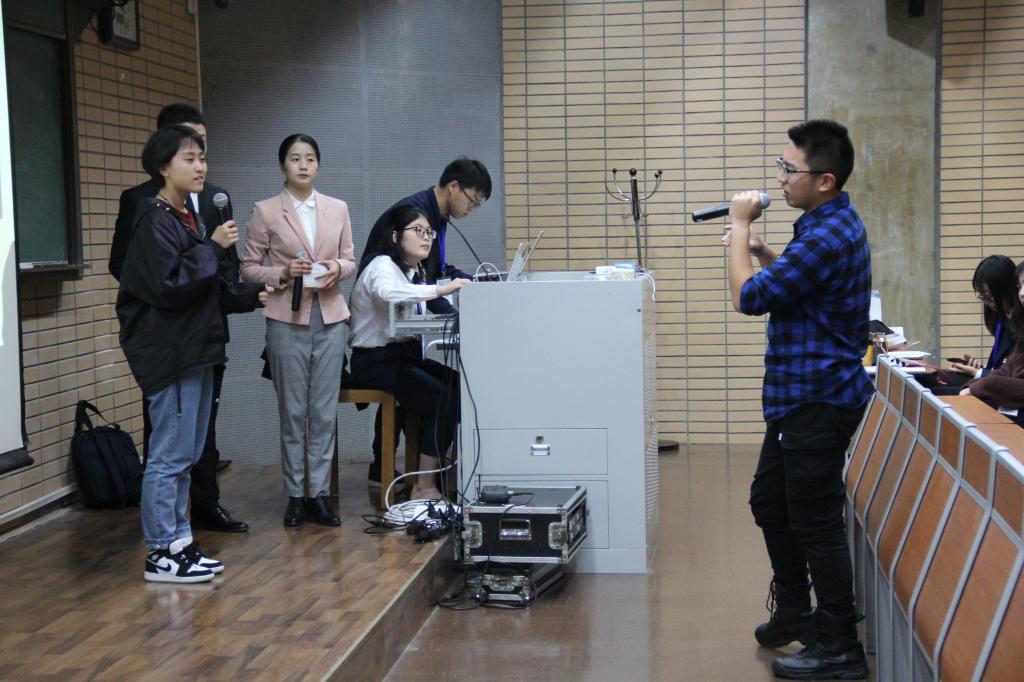 2019年11月2日下午两点,学而思杯·第十九届首都高校外院联盟英文电影配音大赛复赛在pg娱乐电子游戏官网入口逸夫楼第一阶梯教室拉开帷幕。