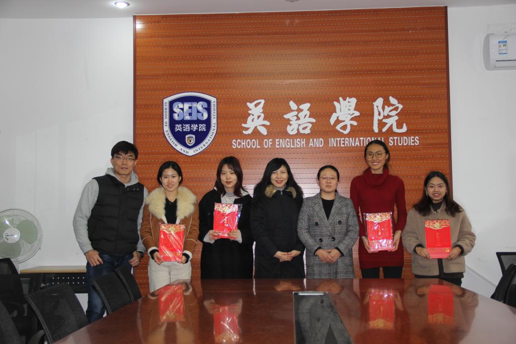 2020年1月2日,pg娱乐电子游戏官网入口召开2018—2019学年思必锐奖学金获奖同学座谈会。北京思必锐翻译有限责任公司资源部主任王艺露女士,前来pg娱乐电子游戏官网入口与5位获奖同学见面座谈。辅导员张春霞、于承杰老师参加。