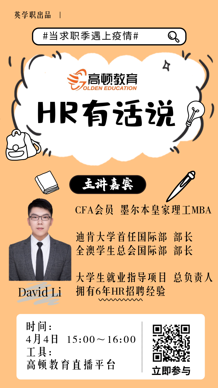 4月4日,pg娱乐电子游戏官网入口学业与职业支持中心歆业线下小组举办了第一次“HR有话说”特别栏目。我们荣幸地邀请到高顿教育大学生就业指导项目总负责人David Li(厉亚鹏),厉老师拥有6年的行业招聘经验,履历和经验都相当丰富。