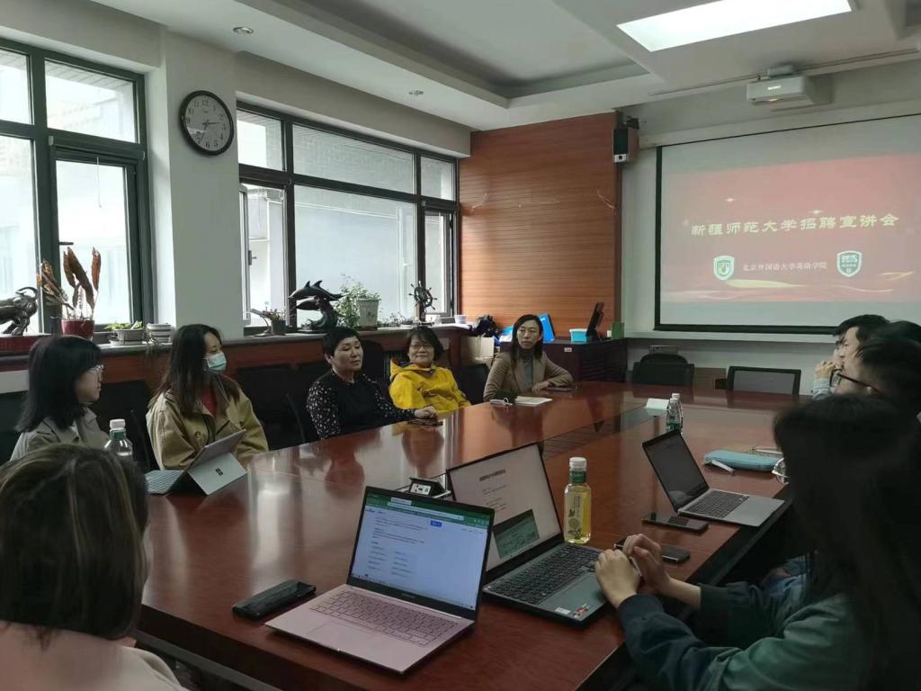 4月3日下午,新疆师范大学外国语学院院长伊力米热•伊力亚斯受邀前来pg娱乐电子游戏官网入口开展2023届毕业生招聘宣讲工作。党总支书记王明欣,副院长张莲进行了接待。