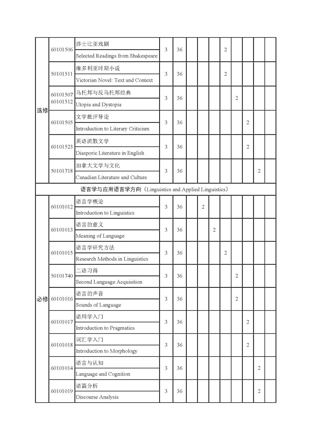 英语文学方向师资