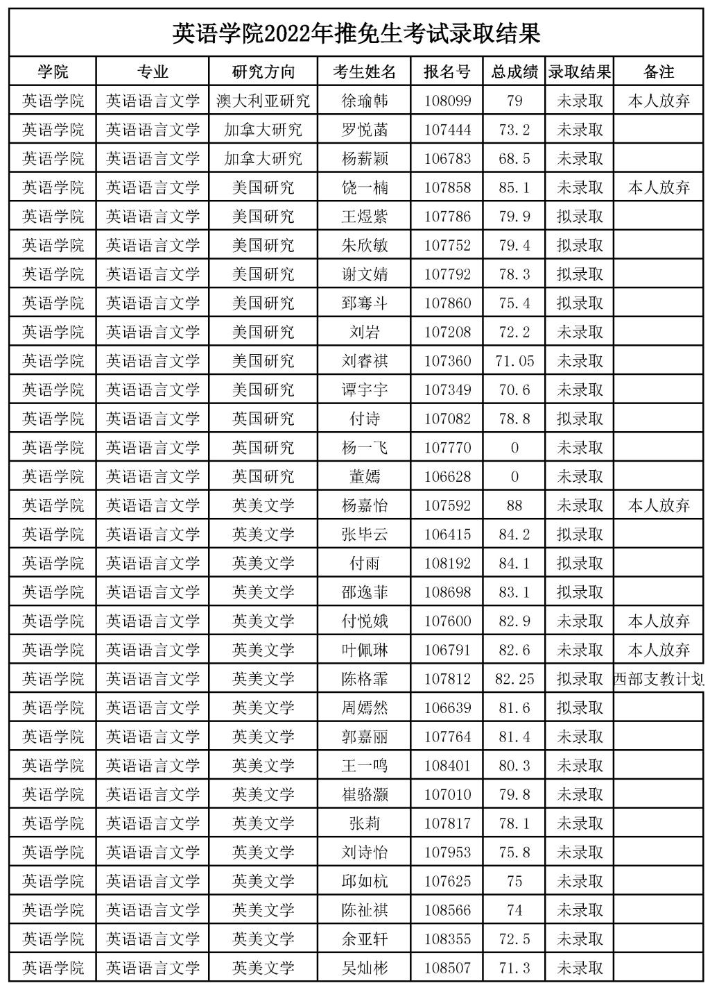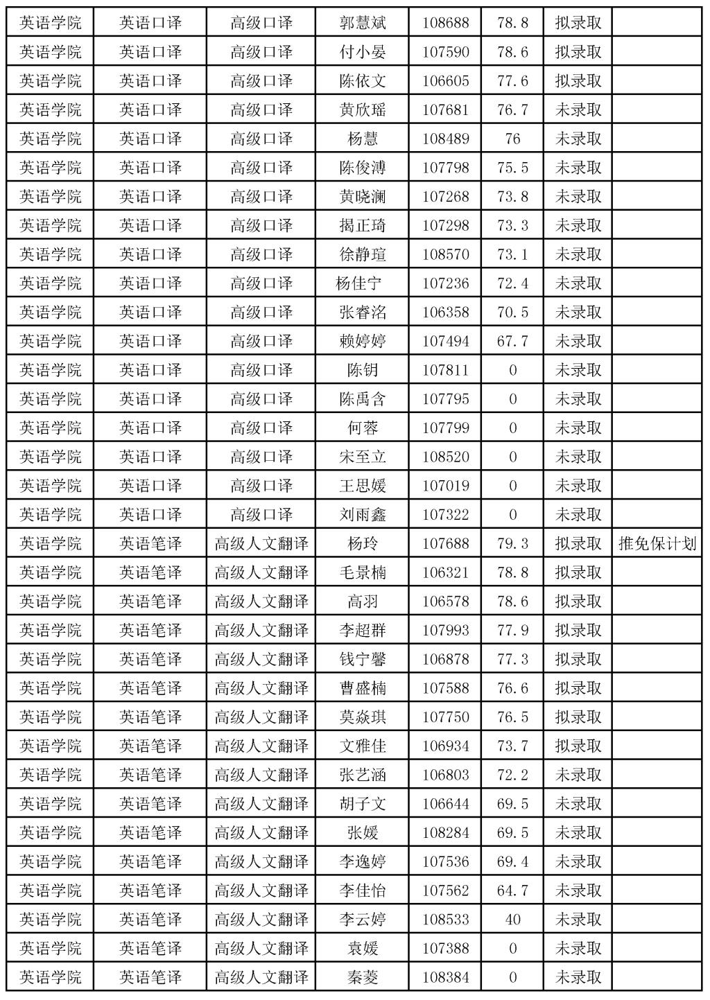pg娱乐电子游戏官网入口2022年推免生考试录取结果公示