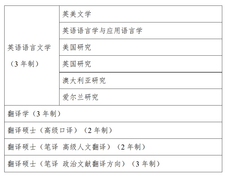 2023年英语语言文学专业拟包括英美文学、英语语言学与应用语言学、美国研究、英国研究、澳大利亚研究、爱尔兰研究等招生方向。
